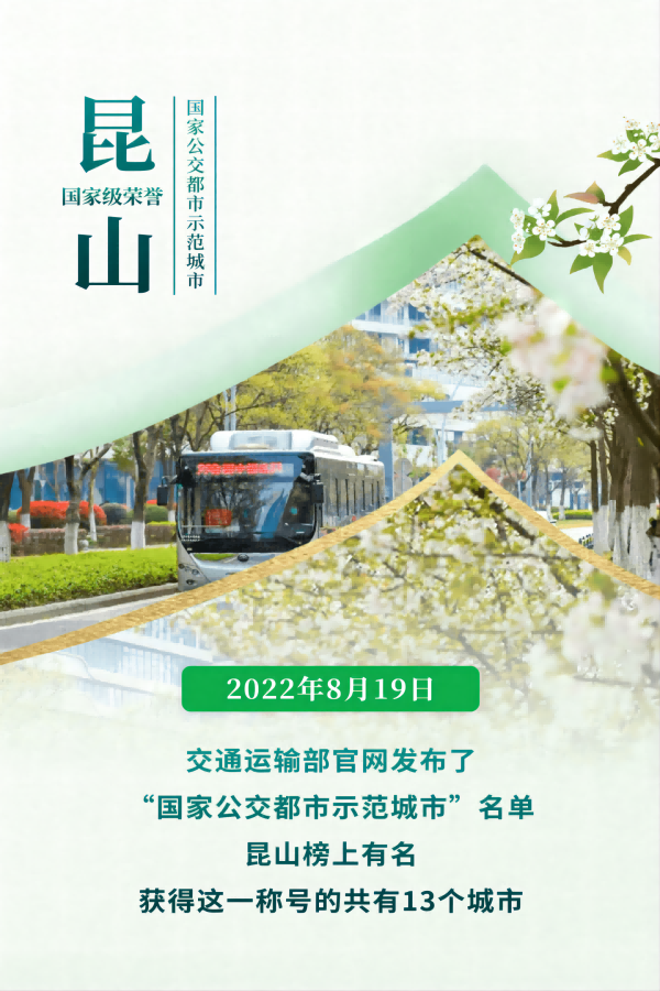 好消息!昆山榮獲“國家公交都市建設(shè)示范城市”稱號(hào)(2022/09/5)